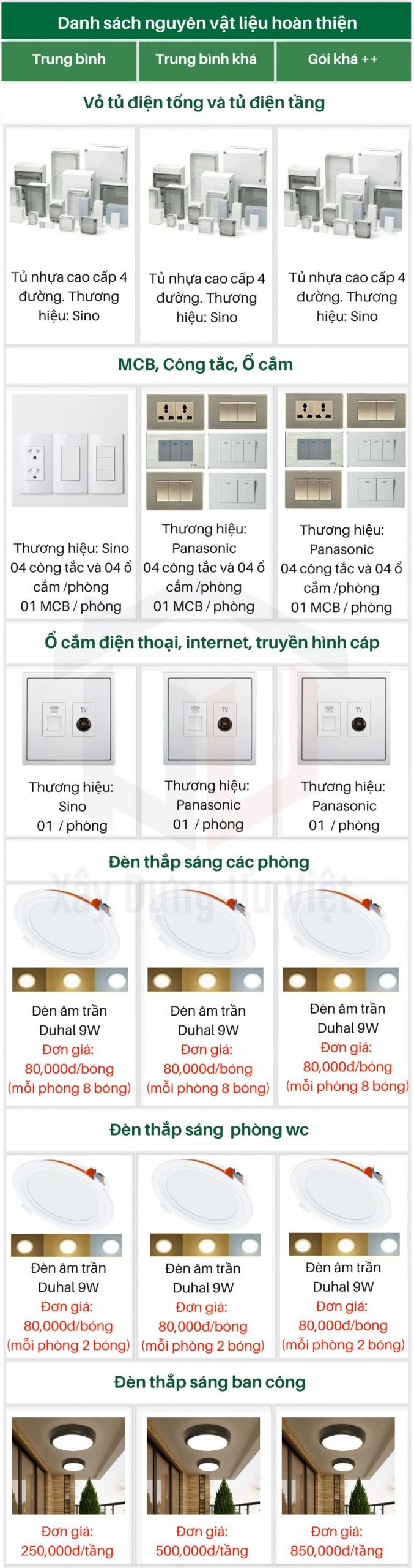 Bảng báo giá hoàn thiện nhà ở đã xây dựng phần thô chi tiết