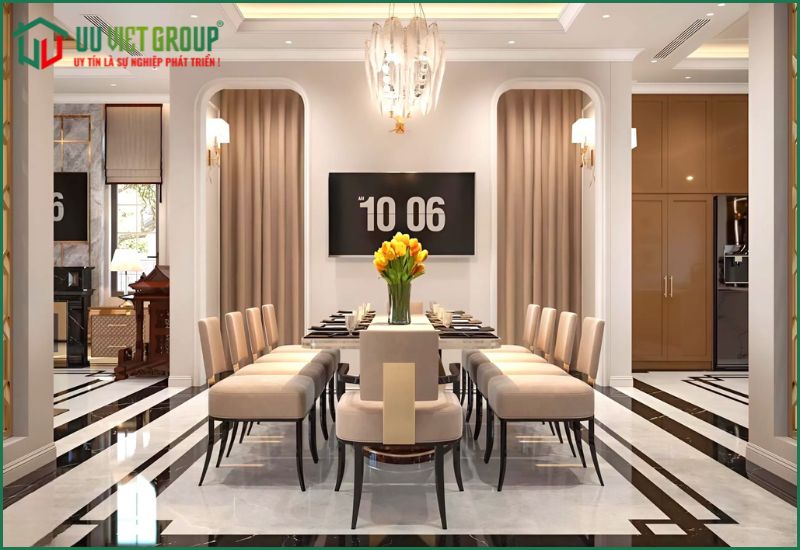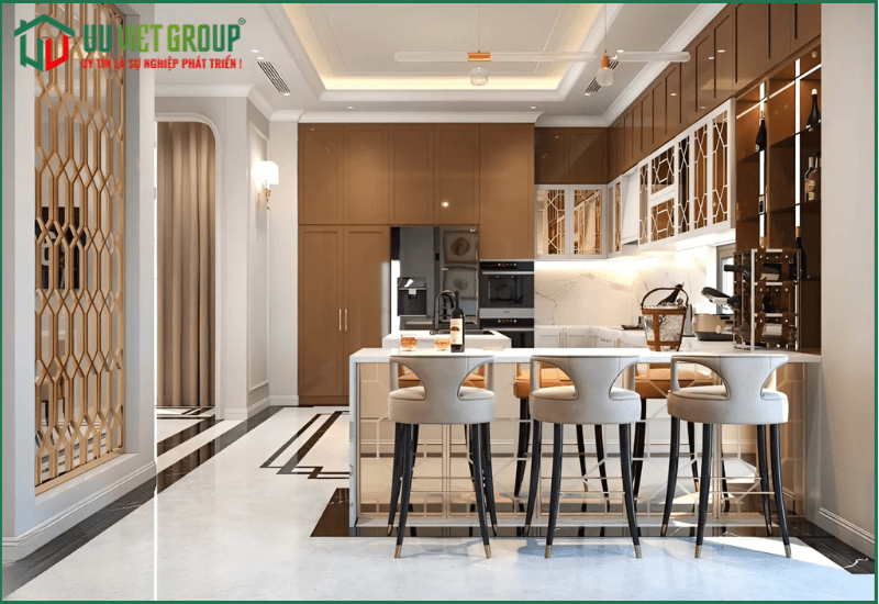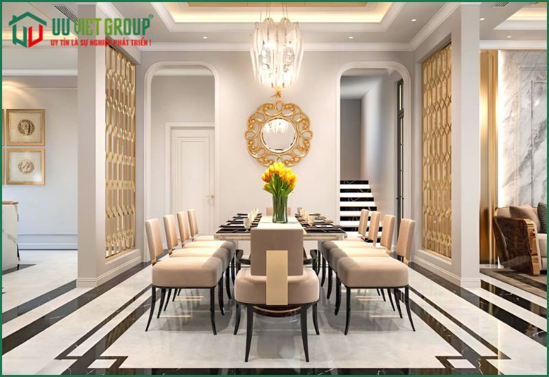 Mẫu nhà biệt thiết kế theo kiến trúc sang trọng nhưng cũng không kém phần tinh tế. Với không gian mở, rộng rãi, thoáng mát, bố trí khoa học, hài hoà, cho phép gia đình tận hưởng tối đa những tiện nghi hiện đại