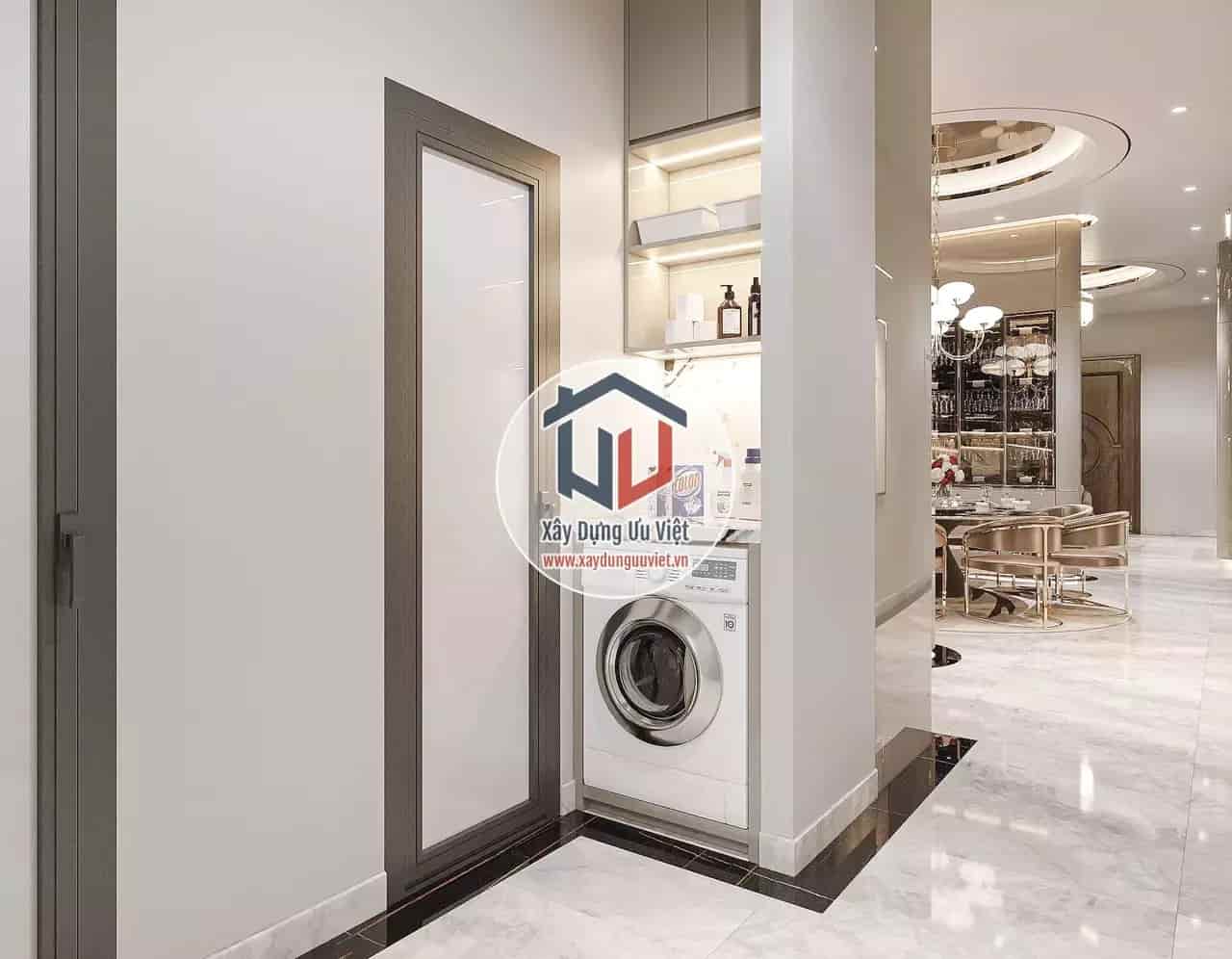 - Diện tích tầng trệt: 8.2×20.5m2; Sảnh trước:4.5×3.7m2; Sảnh bên:3.5×20.1m2
