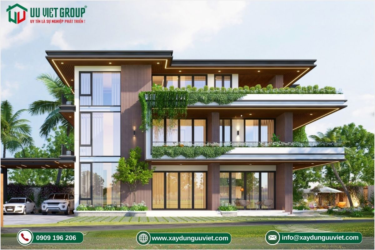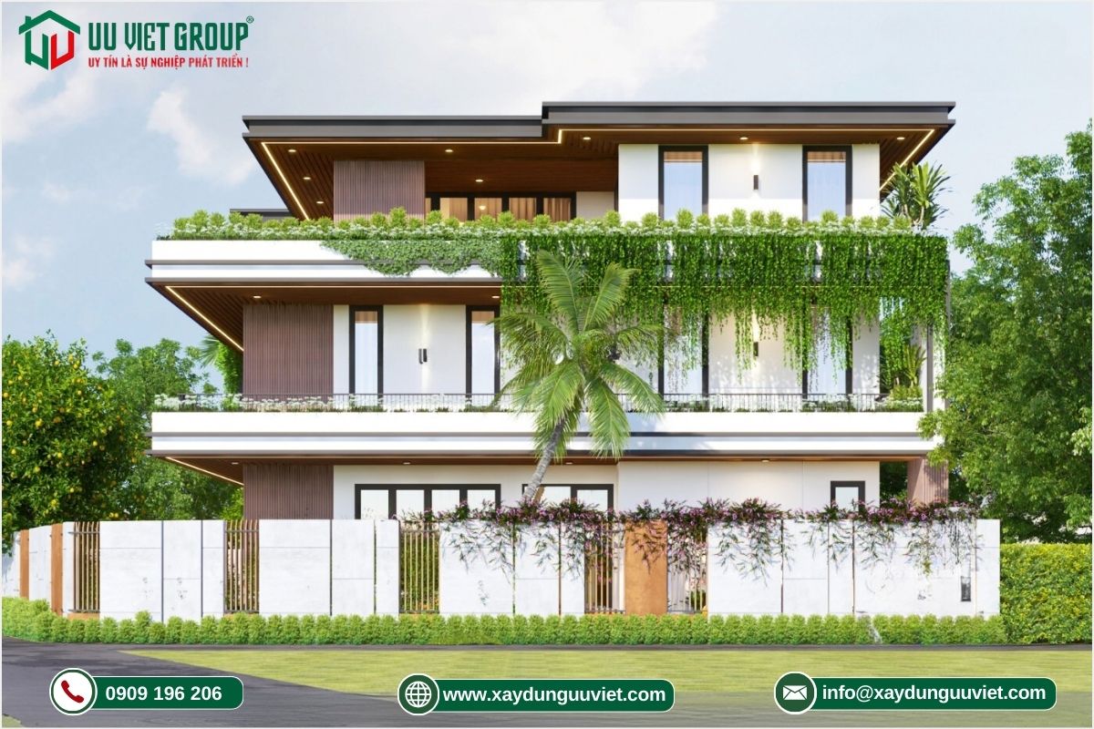Ưu Việt Group hân hạnh giới thiệu đến quý khách mẫu biệt thự hiện đại 3 tầng. Đây là một trong các thiết kế nhà biệt thự hiện đại của Ưu Việt Group nhận được nhiều phản hồi tích cực của các khách hàng trong năm qua. Mẫu biệt thự hiện đại 3 tầng được thiết kế phong cách kiến trúc sang trọng, tinh tế. Với không gian mở, rộng rãi, thoáng mát, bố trí hài hoà, khoa học, giúp gia đình tận hưởng những tiện nghi hiện đại.