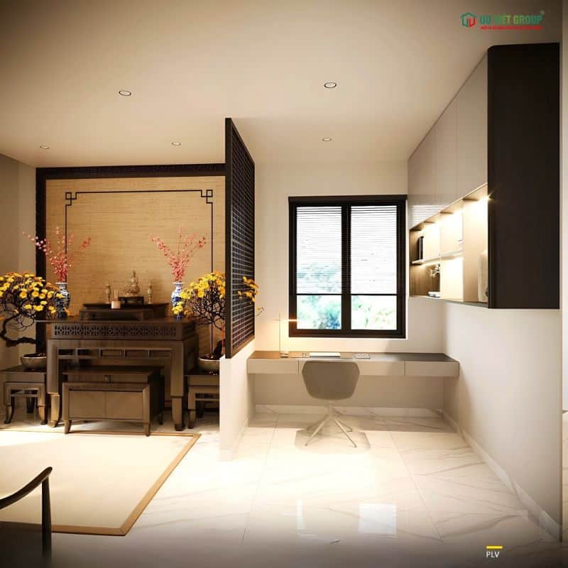 - Lầu 1: Ban công, phòng thờ, phòng làm việc, phòng ngủ 02, phòng wc, phòng ngủ 3, phòng giặt sấy, phòng ngủ 4, phòng thay đồ.