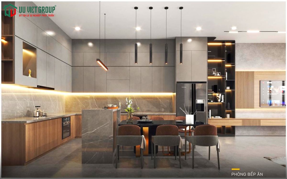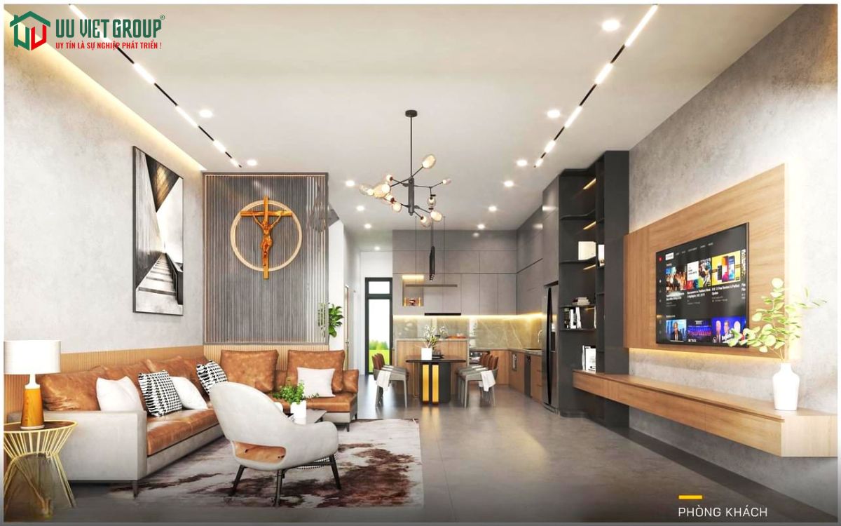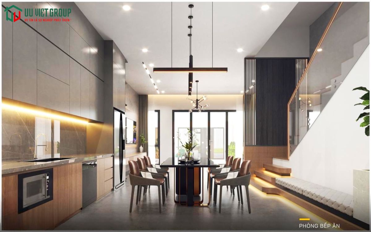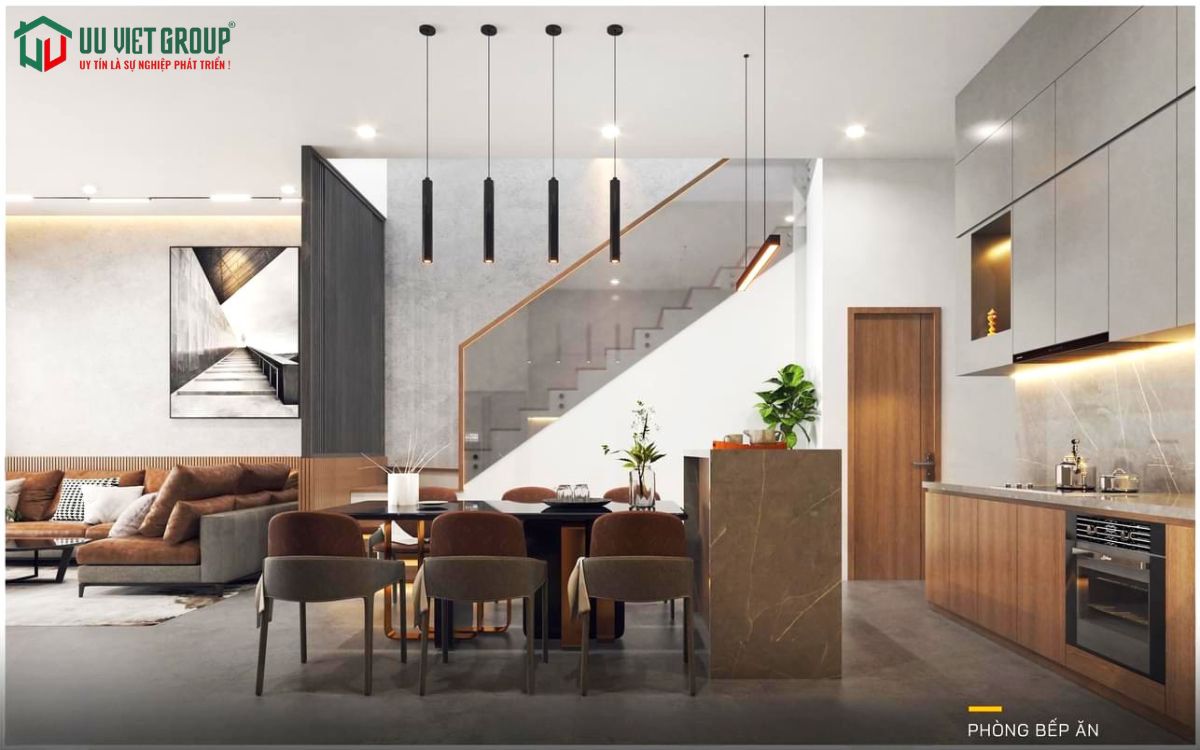 Mẫu nhà phố 1 trệt 2 lầu được thiết kế phong cách kiến trúc sang trọng, tinh tế. Với không gian mở, rộng rãi, thoáng mát, bố trí hài hoà, khoa học, giúp gia đình tận hưởng những tiện nghi hiện đại.