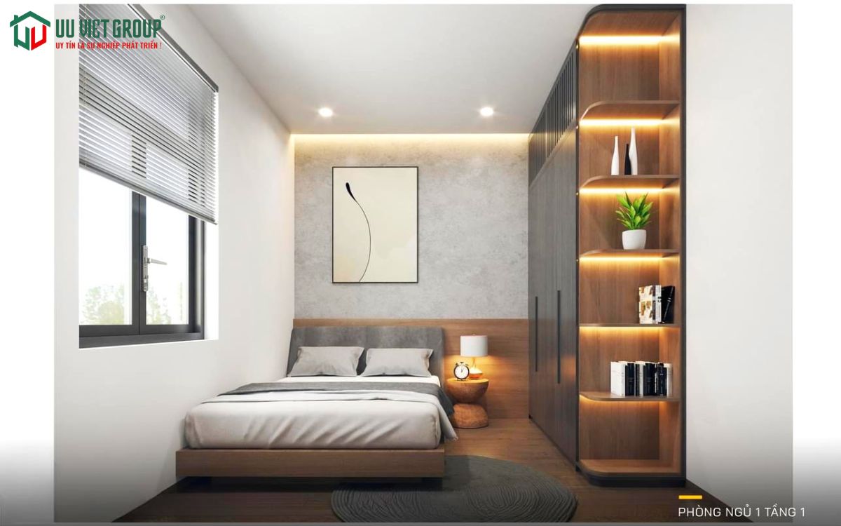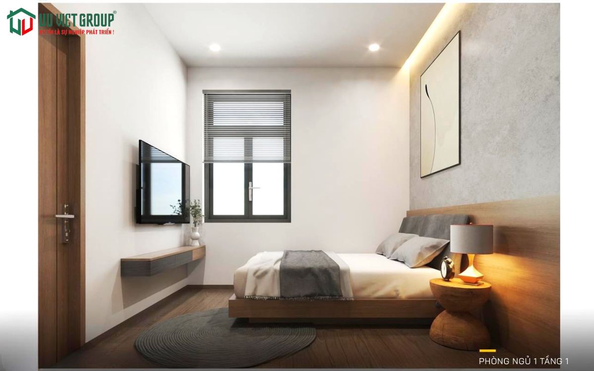 - Lầu 1: Không gian sinh hoặt chung, 2 phòng ngủ, nhà vệ sinh.