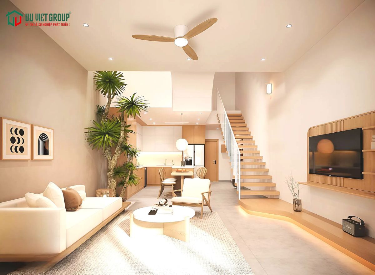- Lầu 1: Không gian sinh hoặt chung, 2 phòng ngủ, nhà vệ sinh.
