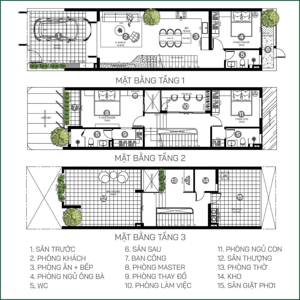 - Trệt: Phòng khách, Khu vực bếp, Phòng ngủ nhỏ, nhà vệ sinh, sân trước