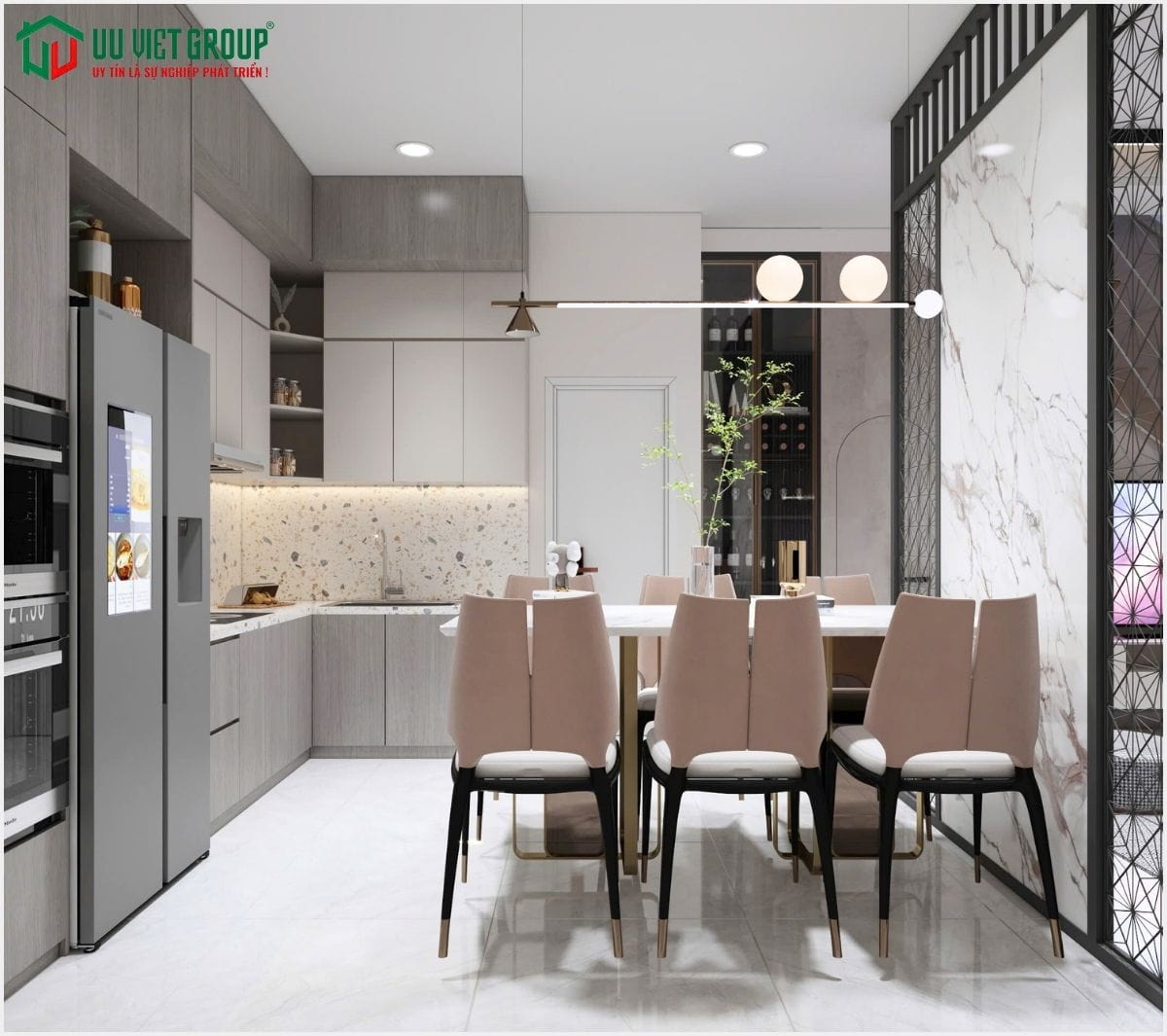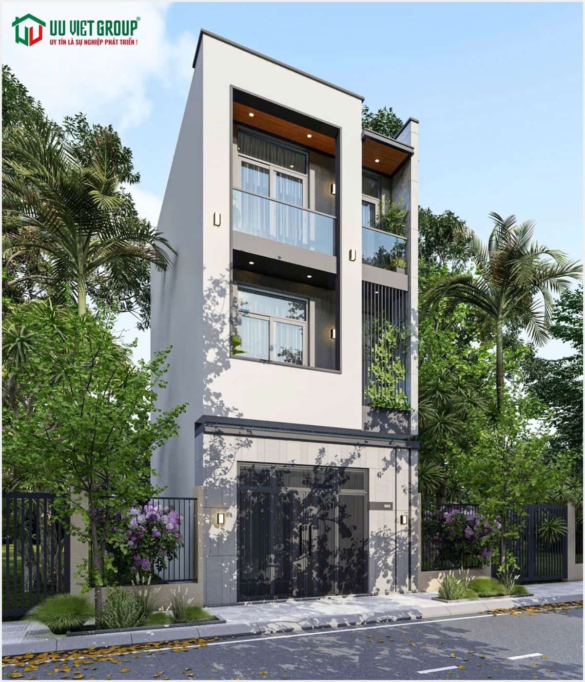 Mẫu nhà phố hiện đại 1 trệt 2 lầu được thiết kế phong cách kiến trúc sang trọng, tinh tế. Với không gian mở, rộng rãi, thoáng mát, bố trí hài hoà, khoa học, giúp gia đình tận hưởng những tiện nghi hiện đại.