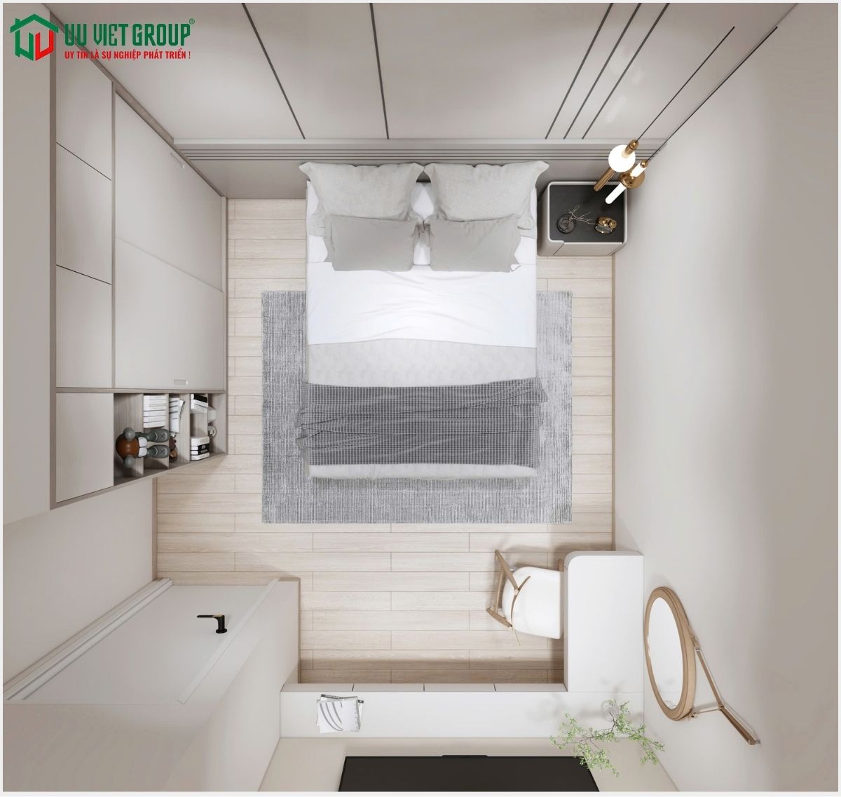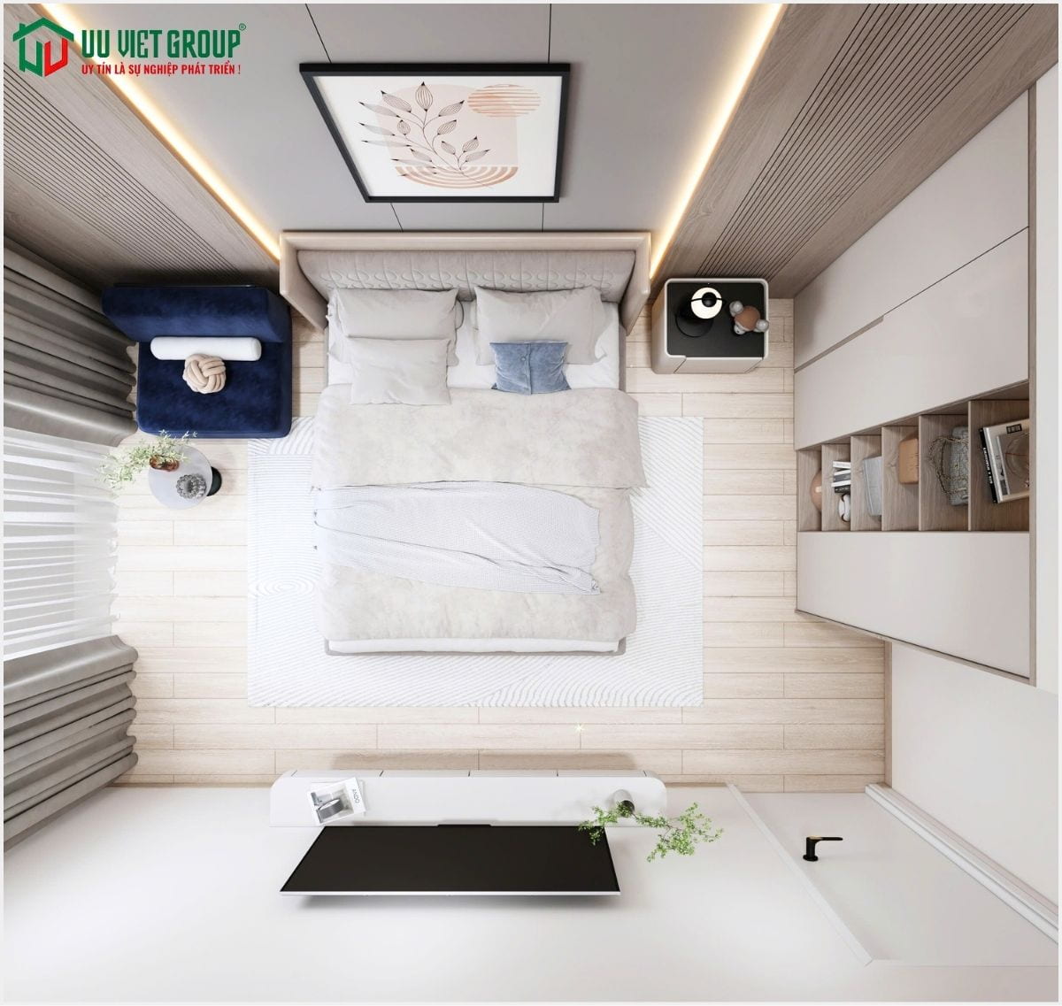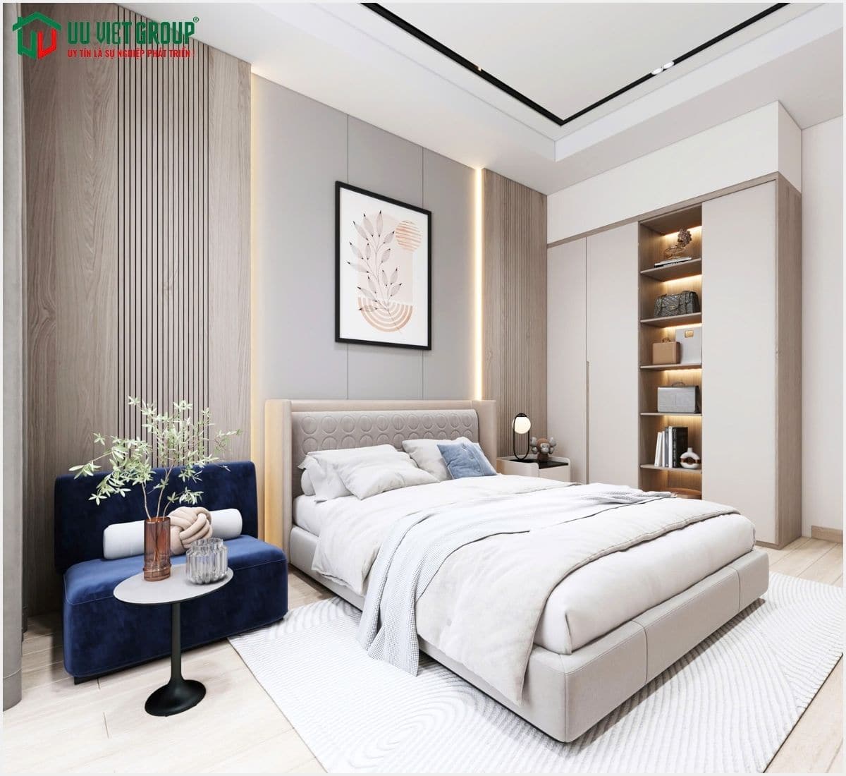 - Lầu 2: Không gian sinh hoặt chung, 2 phòng ngủ, nhà vệ sinh, phòng giặt sấy