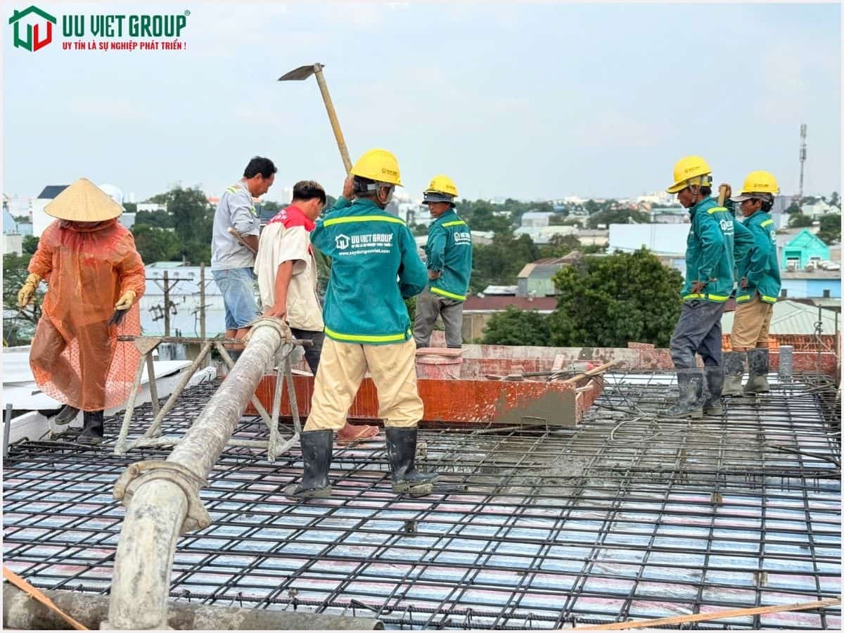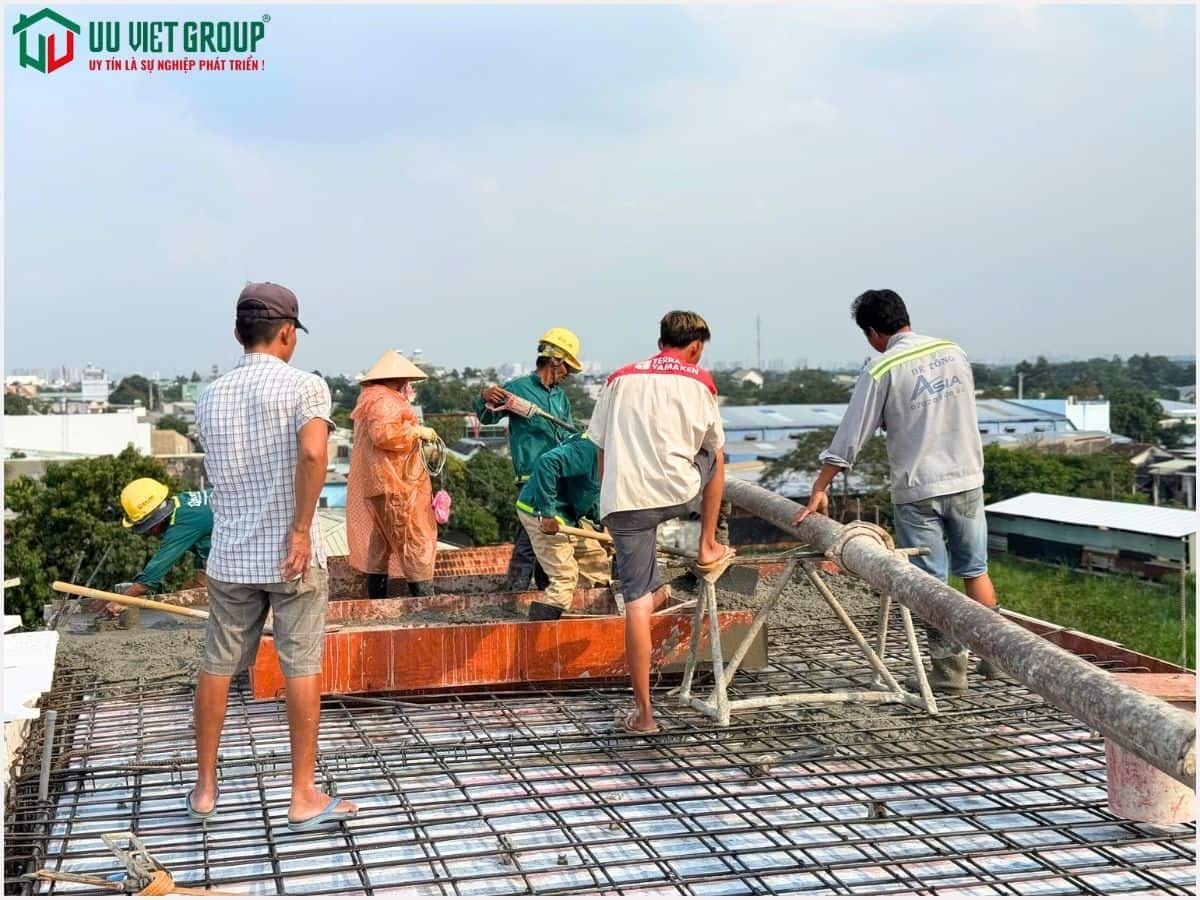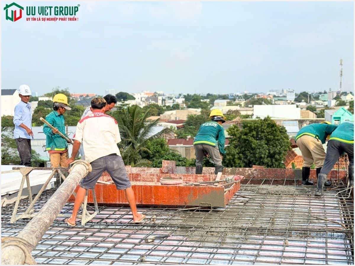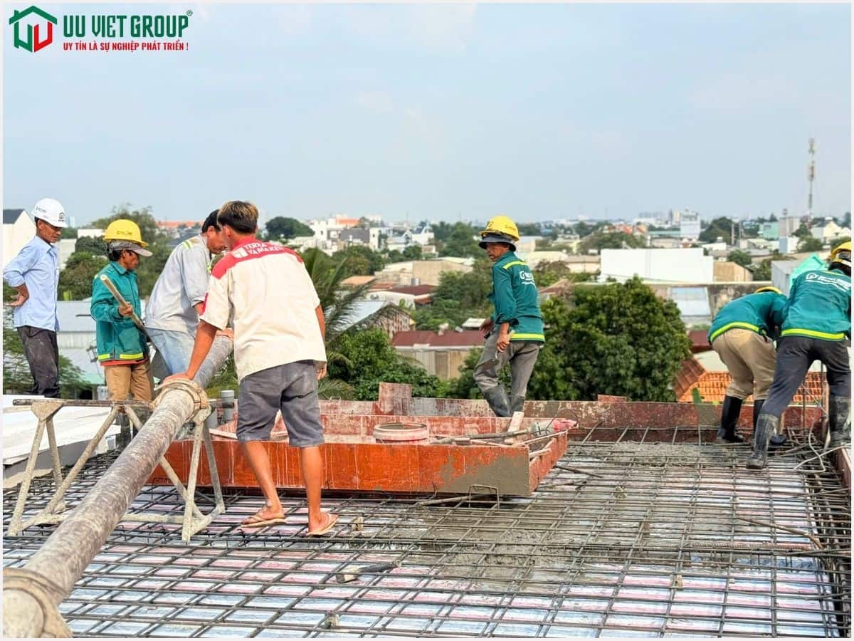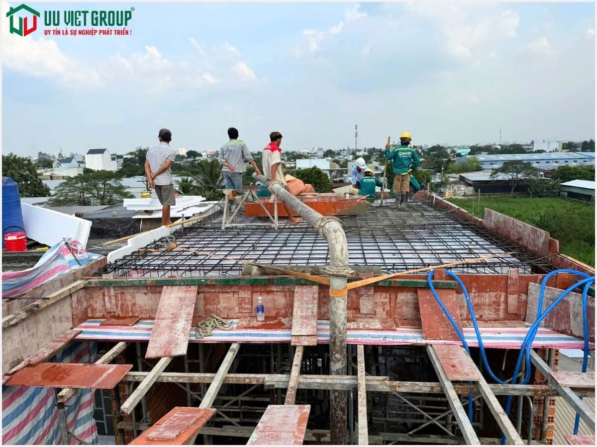 - Tiến độ: Đổ bê tông sàn mái (tiến độ thi công 21 ngày được tính từ ngày đổ bê tông móng)