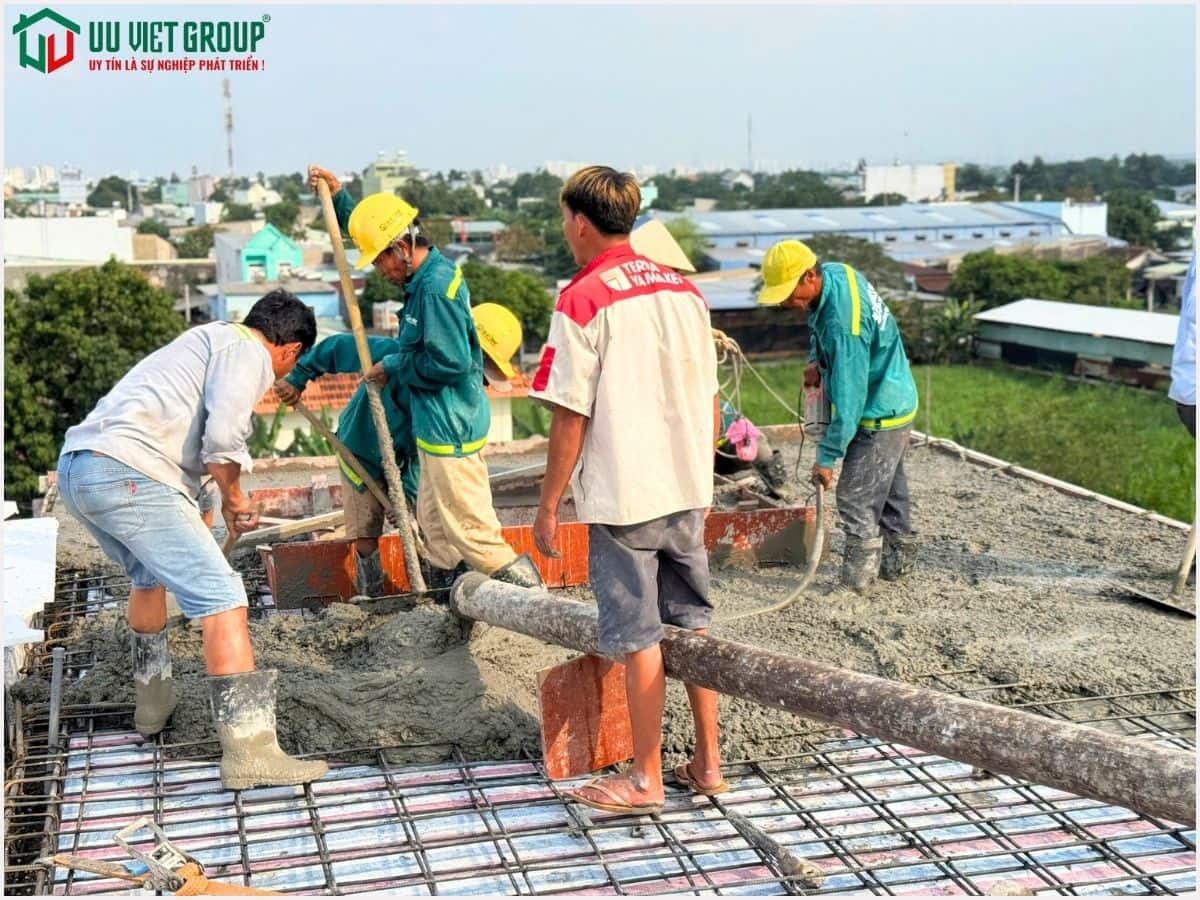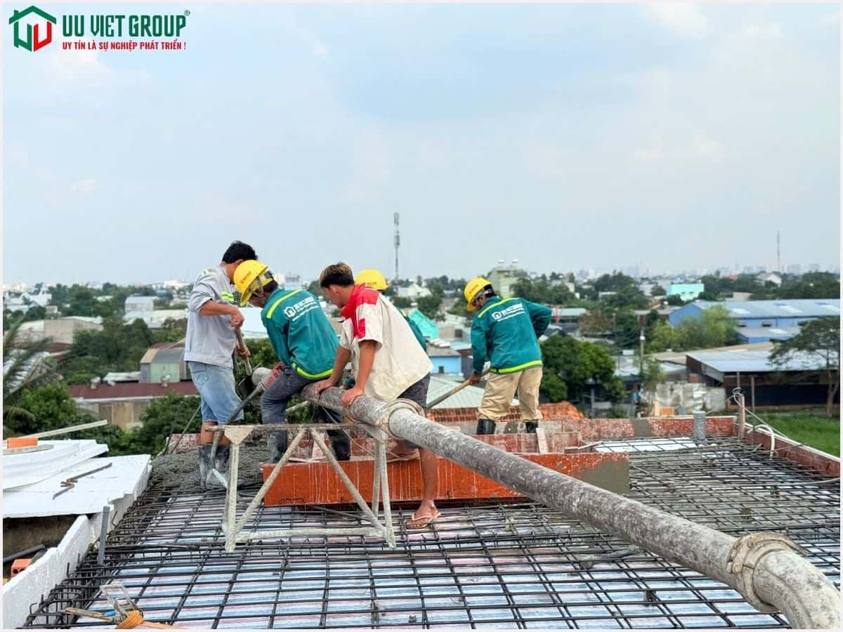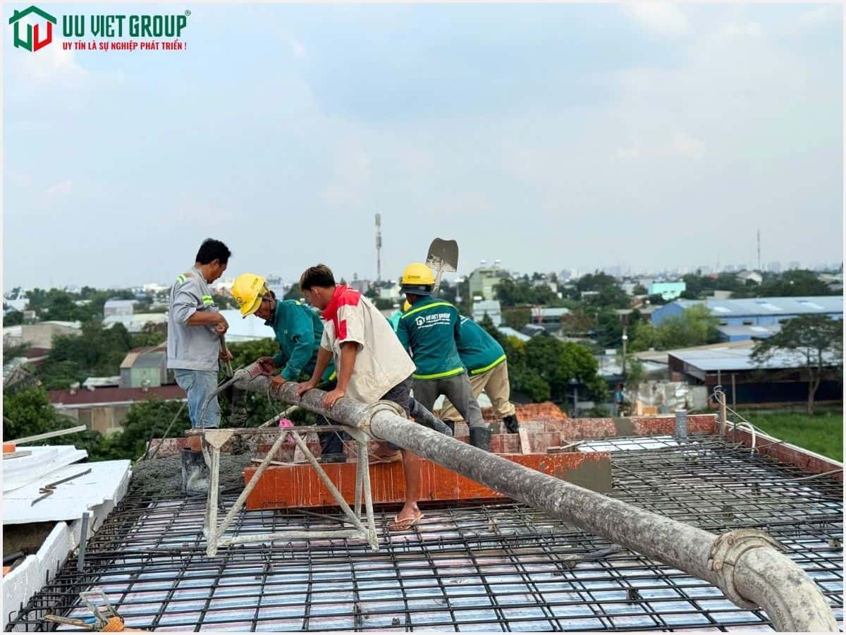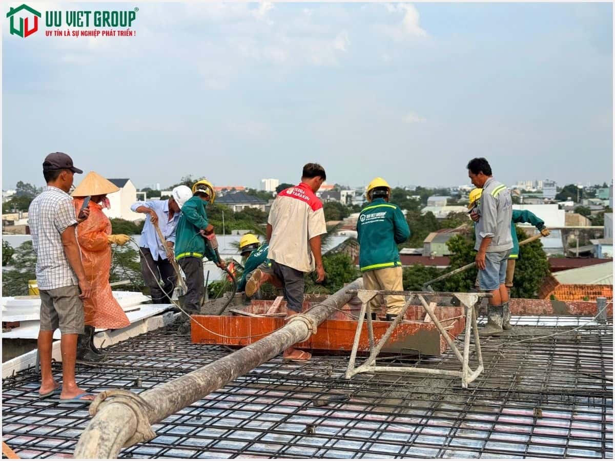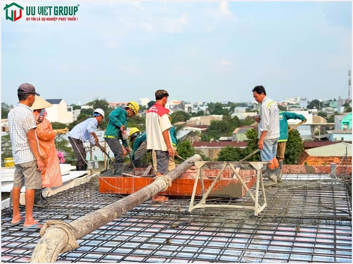 - Tiến độ: Đổ bê tông sàn mái (tiến độ thi công 21 ngày được tính từ ngày đổ bê tông móng)