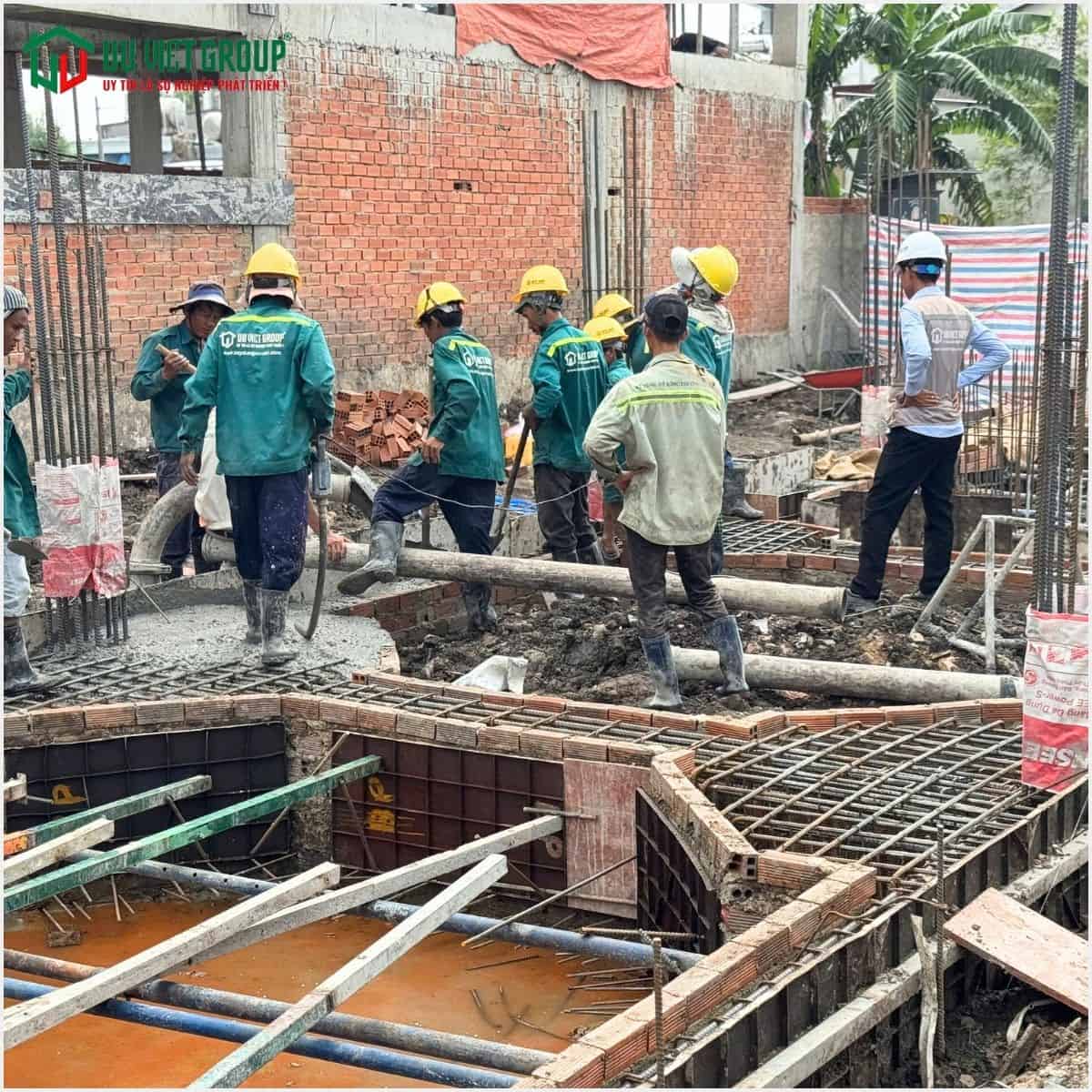 08/10/2024 Công ty Kiến Trúc Ưu Việt Group cập nhập tiến độ thi công bê tông móng nhà phố 1 trệt 5 tầng 1 tum tại Vườn Lài, Phường An Phú Đông quận 12 thành phố Hồ Chí Minh.