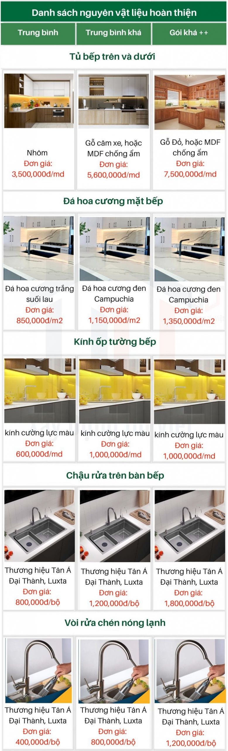 - Xây dựng gói trung bình từ: 5,250,000đ – 5,550,000đ/m2
